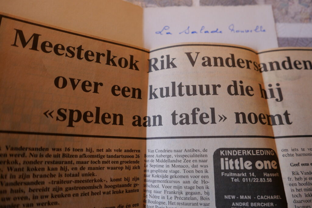 Ah, ik heb een unieke ervaring met Rik (toont een handgeschreven menu) die voor nieuwjaar 1981 bij ons thuis kwam koken. Dat concept heeft trouwens de pers gehaald. Rik noemde dat toen “Spelen aan tafel”.